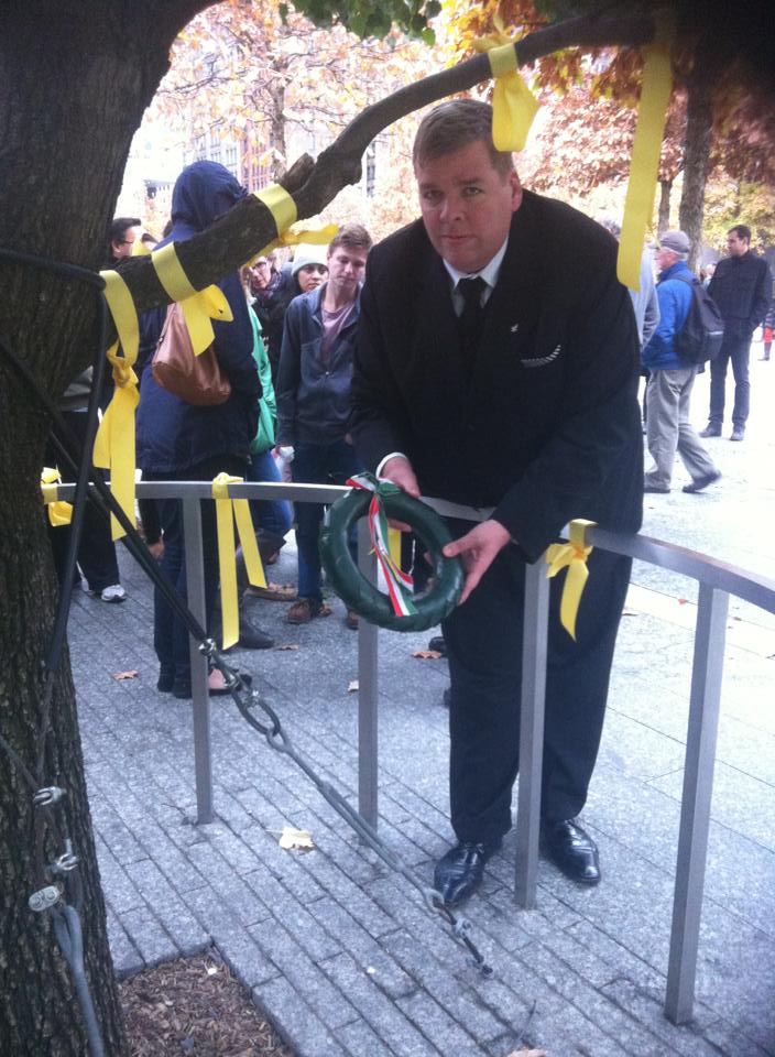 Sir Schmuk Andor elhelyezte a nemzeti színű szalaggal díszített koszorút az egykori ikertornyok helyén álló emlékparkban a Túlélők Fája előtt. A napjainkra már több méteres fa - amelyet 2001-ben épületek maradványai alatt szinte teljesen elégve találtak – a túlélés szinonimájává és az emlékhely központi jelképévé vált.